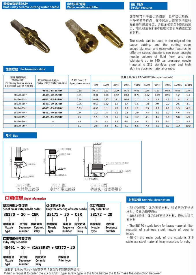 ·48461噴嘴主體為316不銹鋼材料,嵌體為紅寶石材料;
